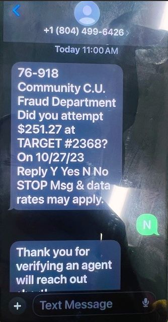 The scammer calls from what appears to be Community Credit Union’s phone number (1-800-690-2338), says there has been suspicious activity on the member’s card, and offers to close the card for the member. In most cases, the scammer already knows part or all of the member’s card number. The scammer then sends a one-time passcode to the member’s phone which the member is instructed to provide for verification. This code is then used by the scammer to register for Apple Pay or Samsung Pay. With this access, the scammer then conducts fraudulent transactions on the member’s card.
